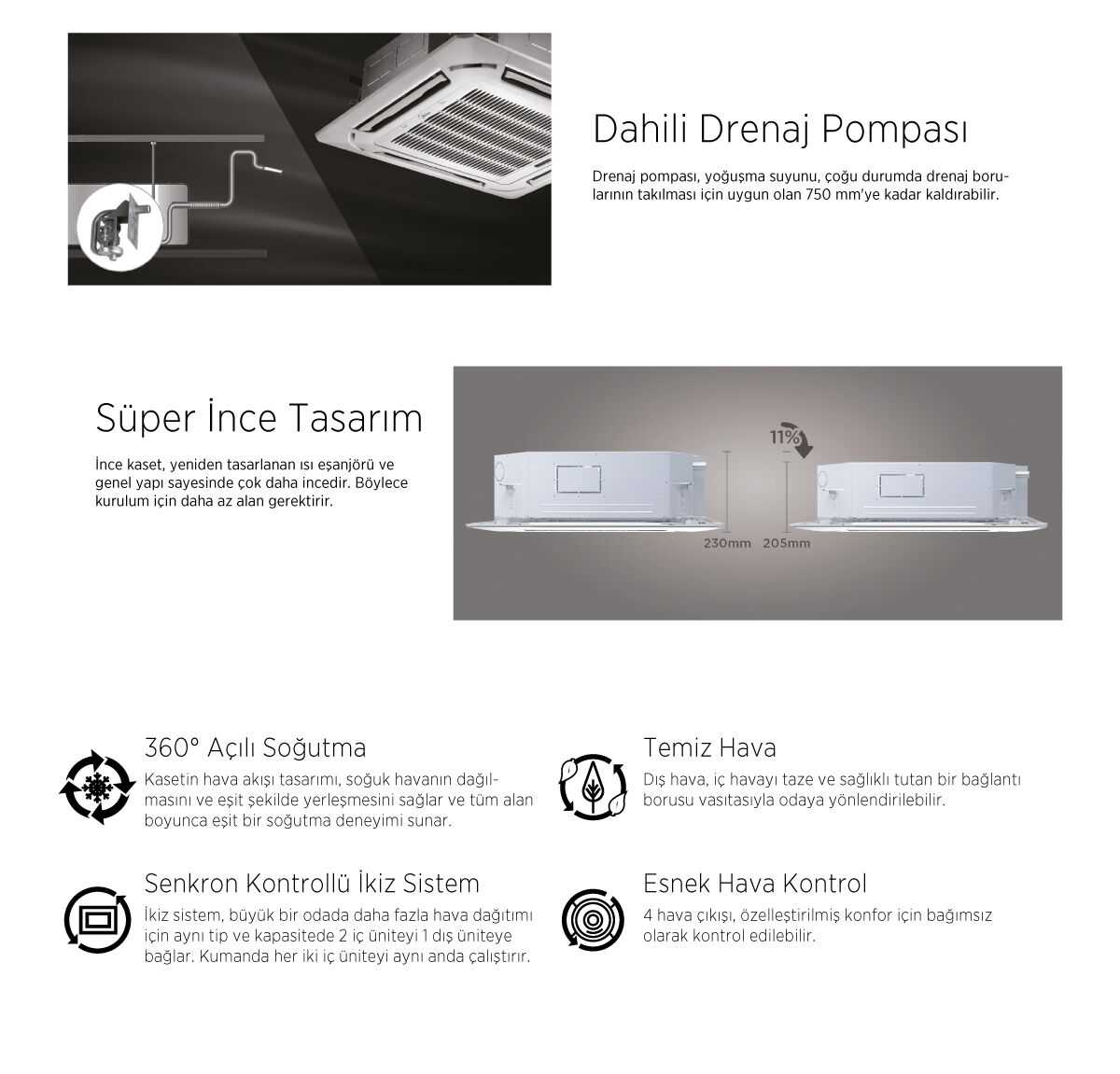 Taze Hava Girişi ve Drenaj Pompası:Dahili taze hava girişi, daha konforlu bir ortam sağlar.