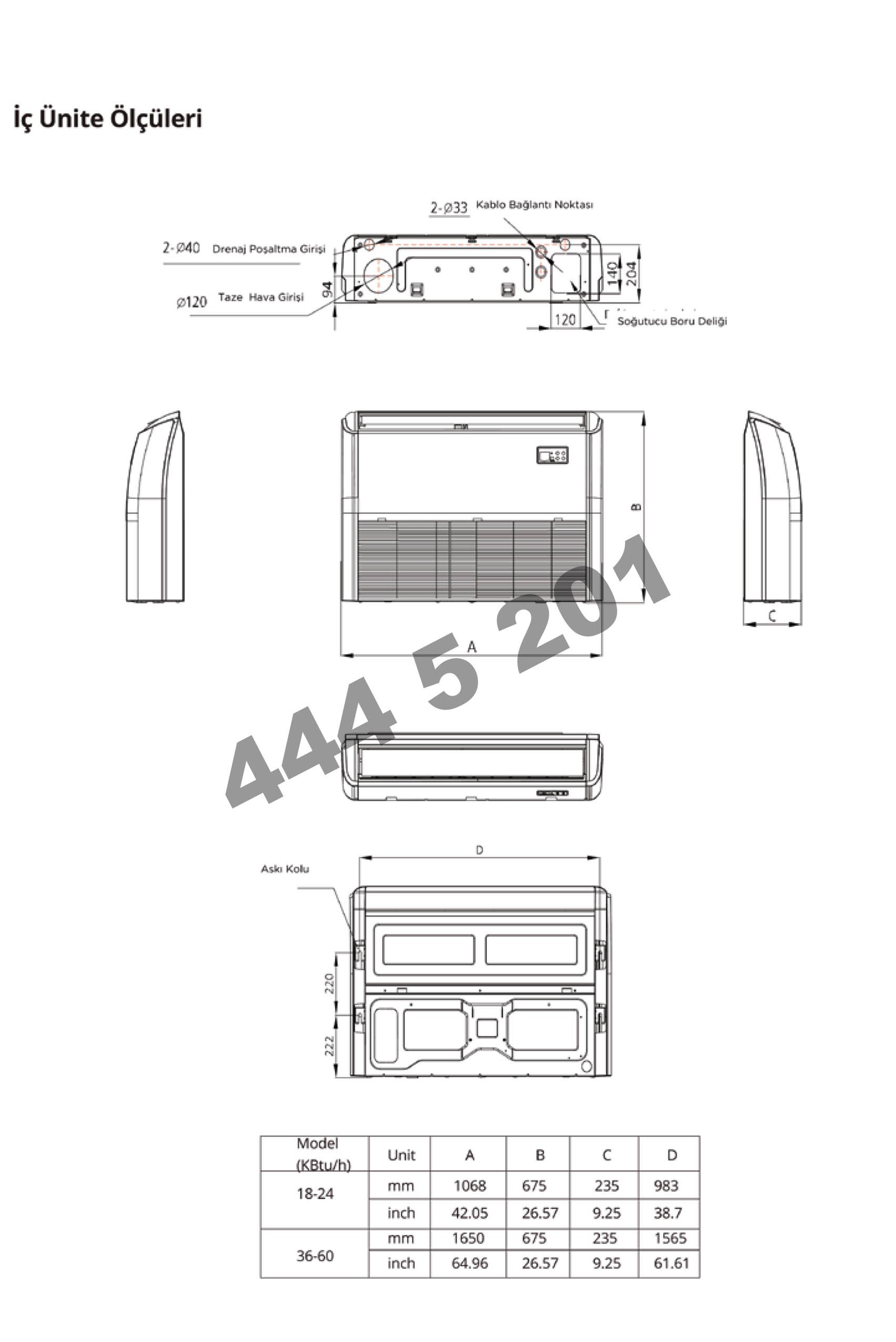 Midea MUEU-18HRFNX(GA) 18000 Btu Yer Tavan Tipi İnv. Klima