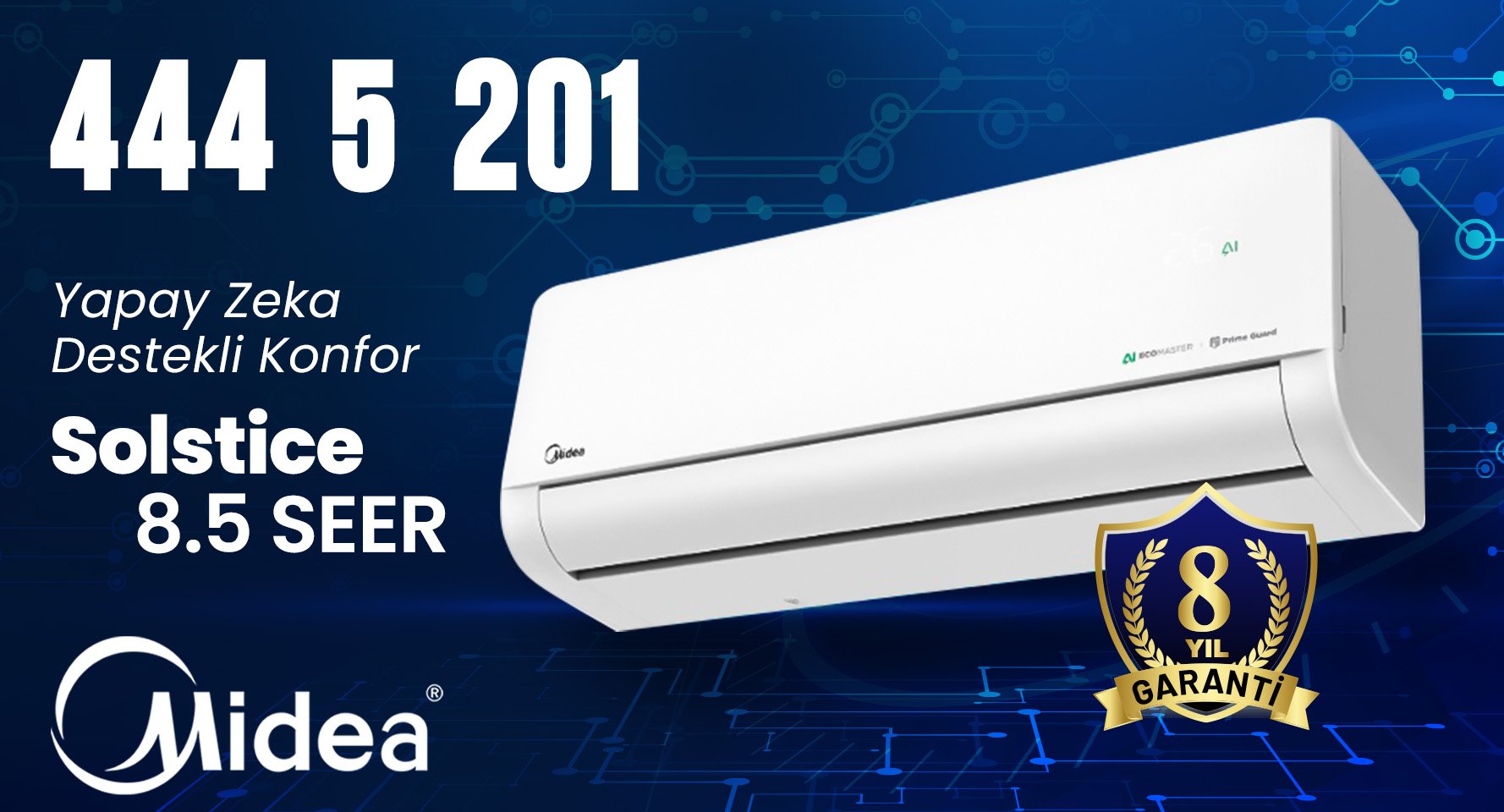 Midea Klima Model : Xtreme Save Eco ve CB1 = 6 Yıl Garantili Midea Klima Model : Breezeles / All Easy Pro / GAIA = 8 Yıl Garantili Midea Klima Model: Multi Split ve Ticari seri ( Kanallı, Kaset, Salon, Yer-tavan ) klimalarda 2 yıl Garanti süresi